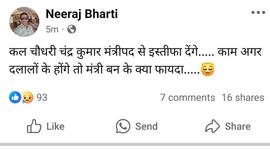 Breaking: पूर्व CPS नीरज भारती की पोस्ट से प्रदेश की राजनीति में मची खलबली